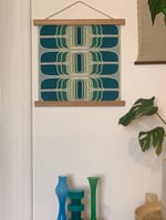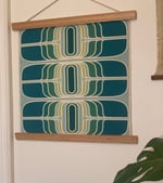 a fused cotton backing, oiled oak batons & cotton rope to hang.